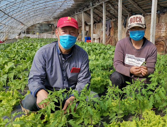 據(jù)農(nóng)產(chǎn)品配送了解北大荒股份八五六分公司種植戶趙健北家的8畝溫室棚內(nèi)綠意盎然,西紅柿、生菜、苦菊、黃瓜等蔬菜即將錯峰上市,預(yù)計效益達(dá)3萬余元。(劉思琪 張銀波 攝)